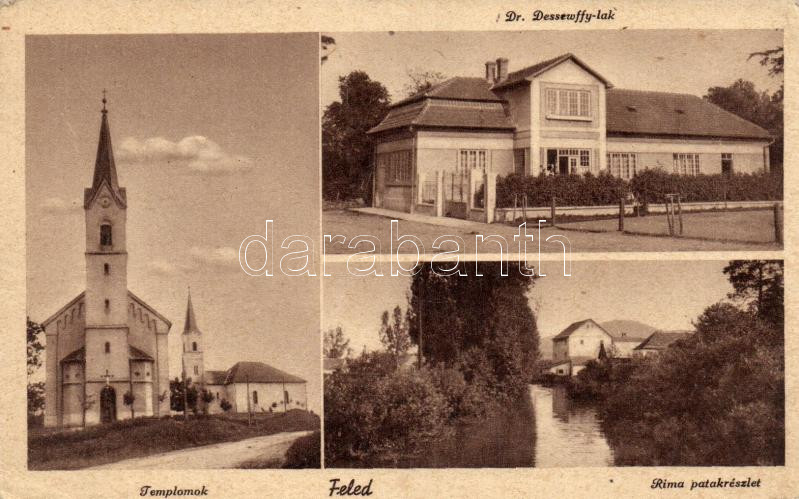 Feled, Templomok, Dessewffy kastély, patak, Özv. Telek Ferencné kiadás... https://www.darabanth.com/de/266-Fernauktion/266.0/Ansichtskarten/Slowakei~300059/Feled-Templomok-Dessewffy-kastely-patak-Ozv-Telek-Ferencne-kiadasa-churches-castle-cree~II1316161