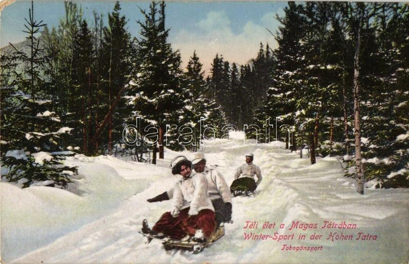 Tátra, téli élet, Tobogánsport / winter sport, toboggan sled (EK) https://www.darabanth.com/de/266-Fernauktion/266.0/Ansichtskarten/Slowakei~300059/Tatra-teli-elet-Tobogansport-winter-sport-toboggan-sled-EK~II1333090