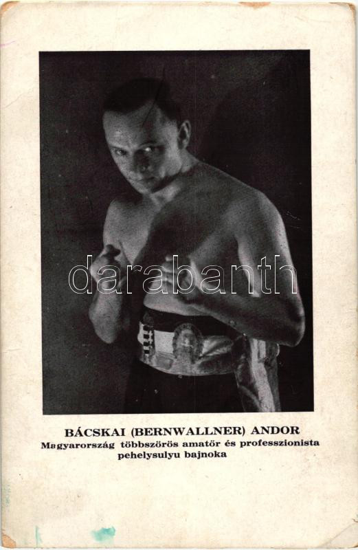 Bácskai Bernwallner Andor, Magyarország pehelysúlyú bajnoka / Hungaria... https://www.darabanth.com/de/266-Fernauktion/266.0/Ansichtskarten/Sport~300097/Bacskai-Bernwallner-Andor-Magyarorszag-pehelysulyu-bajnoka-Hungarian-featherweight-boxer-non~II1333907