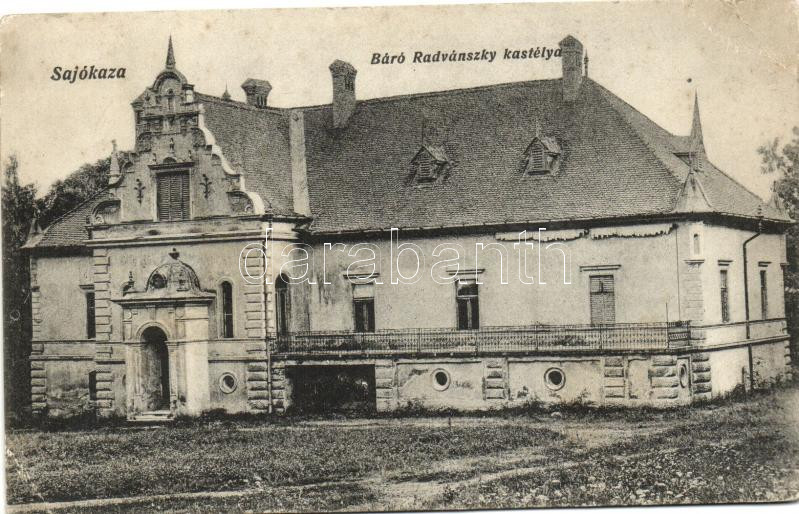 Sajókaza, Báró Radvánszky kastélya, kiadja Monostory György (EB) https://www.darabanth.com/de/266-Fernauktion/266.0/Ansichtskarten/Ungarn~300057/Sajokaza-Baro-Radvanszky-kastelya-kiadja-Monostory-Gyorgy-EB~II1331303
