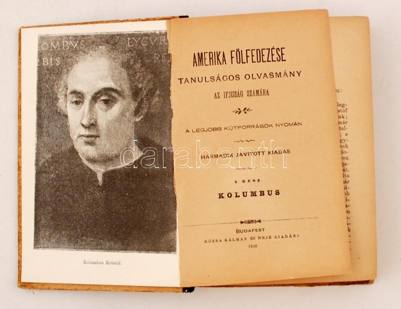 Amerika fölfedezése. Tanulságos olvasmány az ifjúság számára. I. rész. Kolumbus. Budapest, 1910, Rózsa Kálmán és Neje Kiadása. Kiadói félvászon kötésben