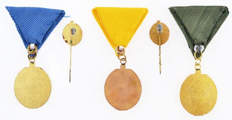 Beschreibung: ~1970-1980. "30.+40.+50. Véradásért" 3db festett, aranyozott fém jelvény, mind mellszalagon és eredeti tokban, kettő miniatűrrel T:2