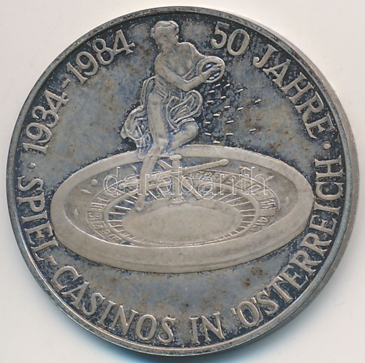 Ausztria 1984. 100Sch Ag "50 éves a kaszinó" zseton eredeti dísztokban (10,03g/0.835/30mm) T:PP patina, ujjlenyomat