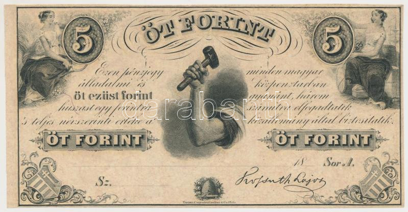 1852. 5Ft "Kossuth bankó" kitöltetlen "A" sorozat ... https://www.darabanth.com/de/266-Fernauktion/266.0/Numismatik/Ungarische-Banknoten~500022/1852-5Ft-Kossuth-banko-kitoltetlen-A-sorozat-TI---Hungary-1852-5-Forint-without-date-and-se~II1329335