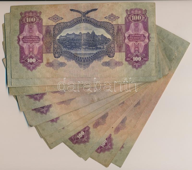 1930. 100P (30x) T:III,III- https://www.darabanth.com/de/266-Fernauktion/266.0/Numismatik/Ungarische-Banknoten~500022/1930-100P-30x-TIII-III-~II1334635