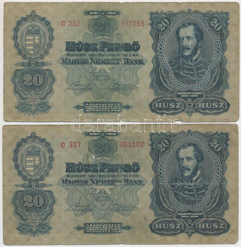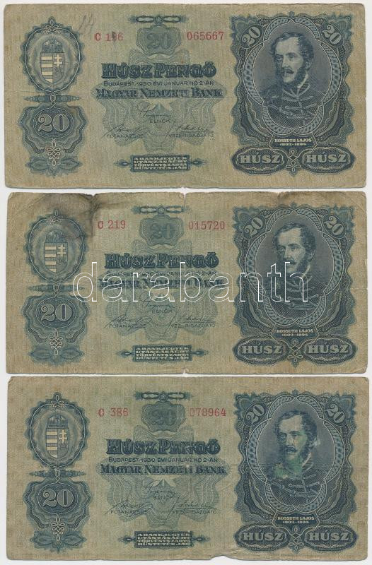 1930. 20P (5x) T:III,III- https://www.darabanth.com/de/266-Fernauktion/266.0/Numismatik/Ungarische-Banknoten~500022/1930-20P-5x-TIII-III-~II1335755