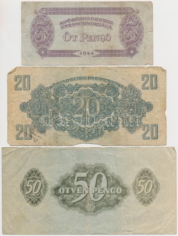 1944. 1P-100P (10x) "A Vörös Hadsereg Parancsnoksága" T:III,... https://www.darabanth.com/de/266-Fernauktion/266.0/Numismatik/Ungarische-Banknoten~500022/1944-1P-100P-10x-A-Voros-Hadsereg-Parancsnoksaga-TIII-III-~II1336359
