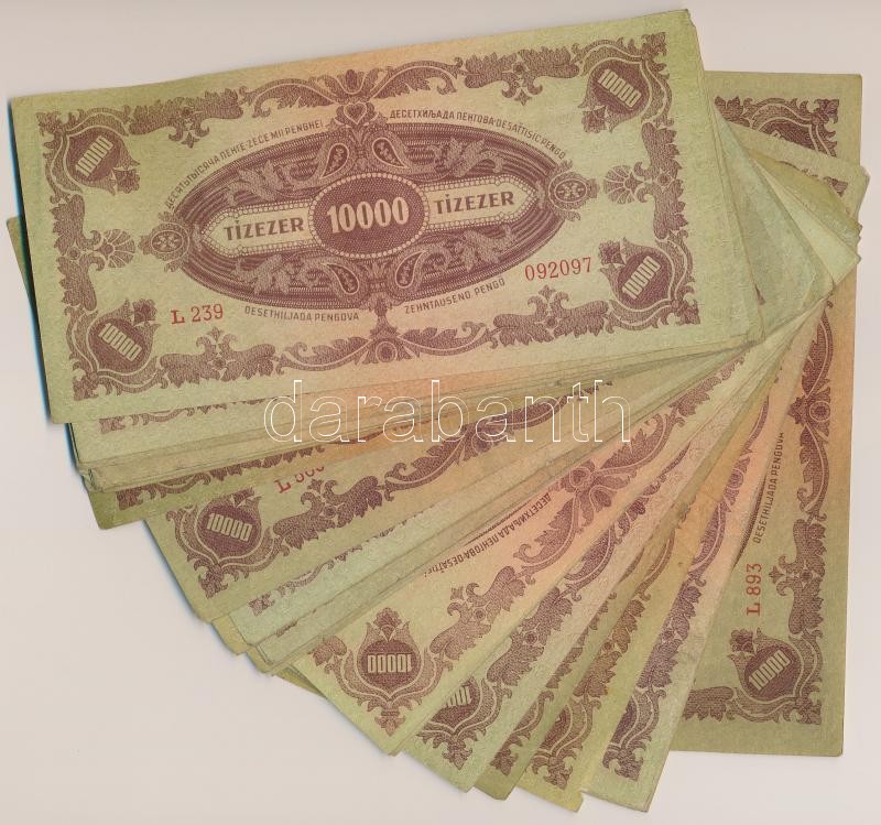 Beschreibung: 1945. 10.000P (30x) mind "MNB" bélyeggel T:III