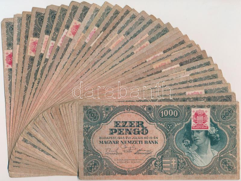 Beschreibung: 1945. 1000P (30x) mind piros "MNB" bélyeggel T:III,III-