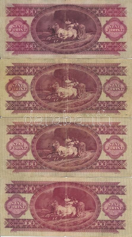 Beschreibung: 1949. 100Ft (4x) T:III,III- közte ázásnyomos