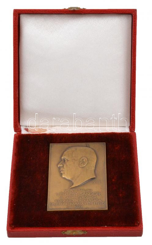 Berán Lajos (1882-1943) 1927. "Vértesaljai Vértesy Sándor Ő Nagyméltósága 10 évi államtitkársága emlékére - Barátai és tisztelői" kétoldalas Br plakett (90x57,5mm) T:2