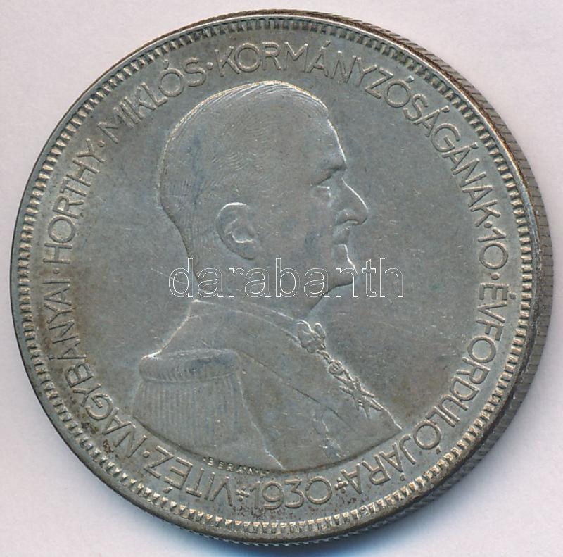 1930. 5P Ag "Horthy jobbra" T:2,2-
