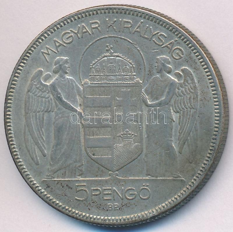 Beschreibung: 1930. 5P Ag "Horthy jobbra" T:2,2-