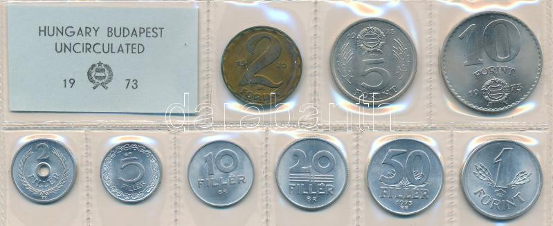 1973. 2f-10Ft 9db klf érmés forgalmi sor fóliatokban T:1 https://www.darabanth.com/de/266-Fernauktion/266.0/Numismatik/Ungarische-Munzen-und-Munzen-mit-ungarischem-Munzzeichen~500008/1973-2f-10Ft-9db-klf-ermes-forgalmi-sor-foliatokban-T1~II1332143