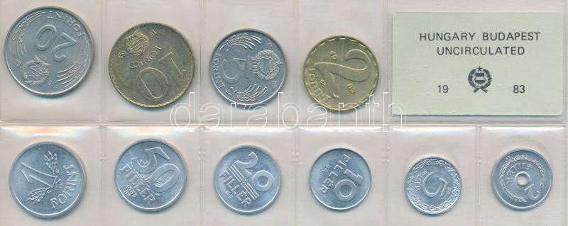 1983. 2f-20Ft 10db klf, érmés forgalmi sor fóliatokban T:1 https://www.darabanth.com/de/266-Fernauktion/266.0/Numismatik/Ungarische-Munzen-und-Munzen-mit-ungarischem-Munzzeichen~500008/1983-2f-20Ft-10db-klf-ermes-forgalmi-sor-foliatokban-T1~II1332188