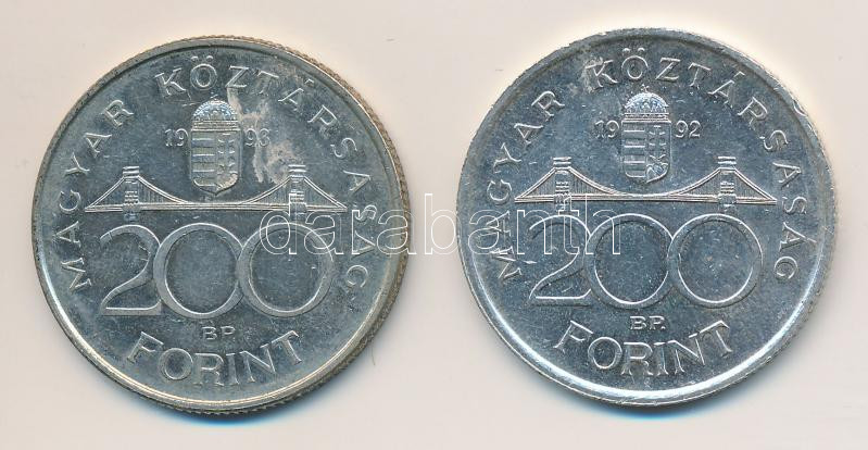 1992-1993. 200Ft Ag "MNB" (2x) T:2,2- https://www.darabanth.com/de/266-Fernauktion/266.0/Numismatik/Ungarische-Munzen-und-Munzen-mit-ungarischem-Munzzeichen~500008/1992-1993-200Ft-Ag-MNB-2x-T2-2-~II1335756