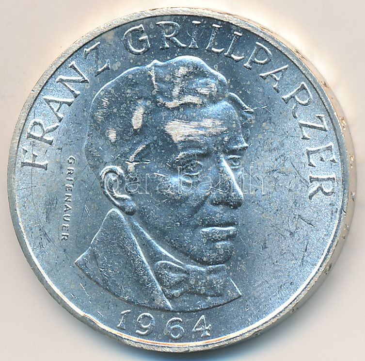 Ausztria 1964. 25Sch Ag "Franz Grillparzer" tanúsítvánnyal T:2 Austria 1964. 25 Schilling Ag "Franz Grillparzer" with certificate C:XF