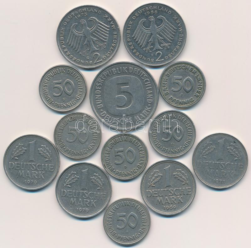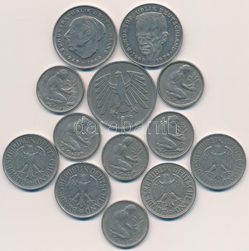 Beschreibung: NSZK 1949-1988. 50pf (6xklf) + 1M (4xklf) + 2M (2xklf) + 5M T:2,2-