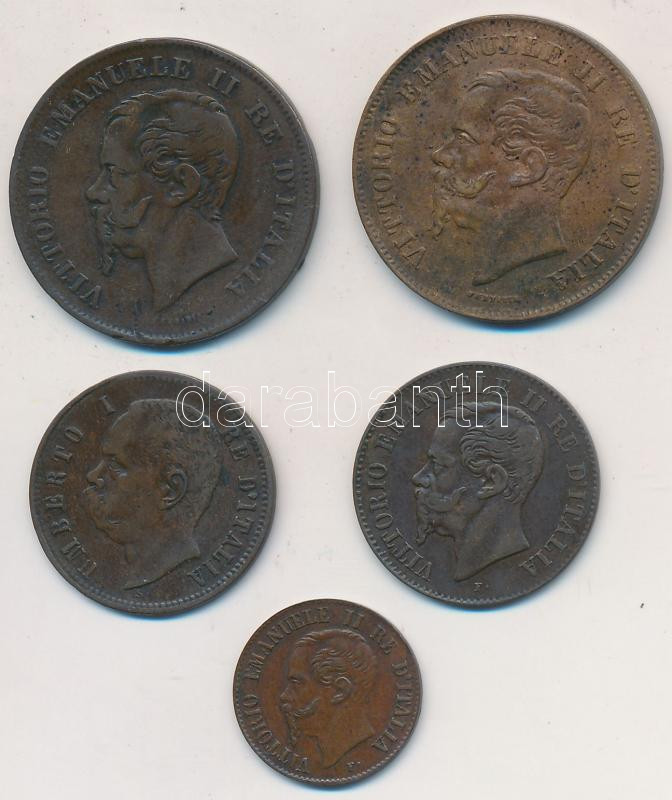Olaszország 1861N 5c Cu + 1862N 5c Cu + 1867M 1c Cu + 2c Cu + 1898R 2c Cu T:2,2-