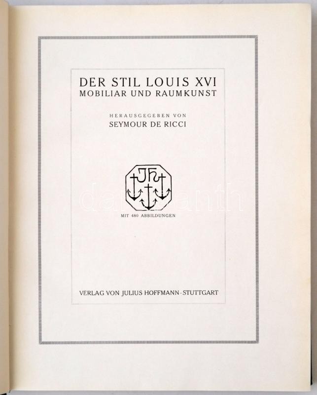 Seymour de Ricci: Der Stil Louis XVI. Der Stil Louis XVI. Mobiliar und Raumkunst. Mit 480 Abbildungen. Stittgart, é.n.n, Julius Hoffmann. Kiadói egsézvászon kötésben