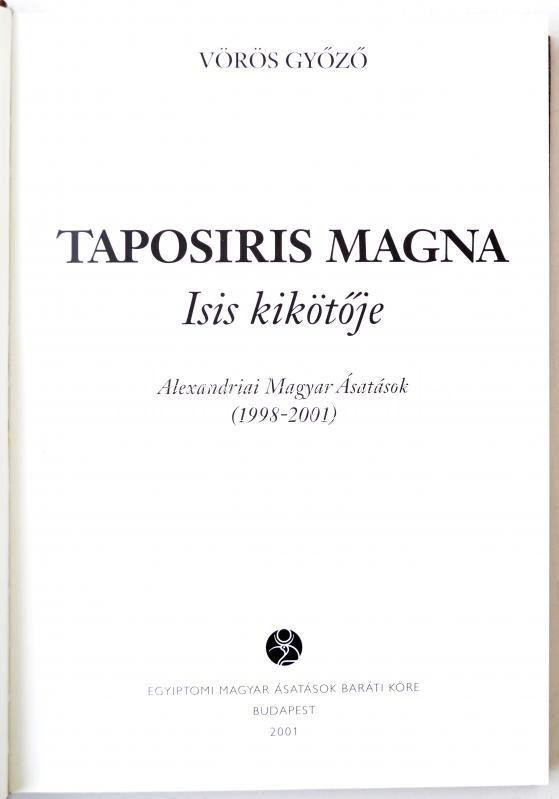 Vörös Győző: Taposiris Magna. Isis kikötője. Alexandriai magyar ásatások. 1998-2001. Bp., 2001, Egyiptomi Magyar Ásatások Baráti Körének kiadványa. 203 p. Kiadói modern keménykötésben. Számos fotóval.