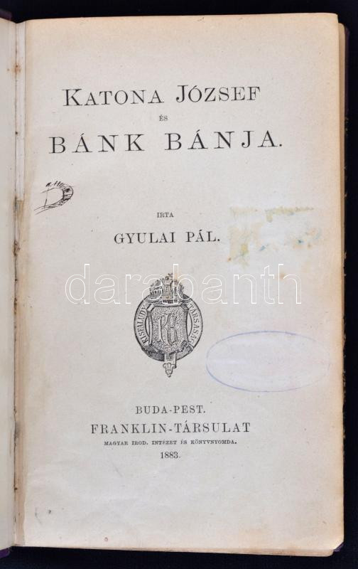 Gyulai Pál: Katona József és Bánk bánja. Bp., 1883, Franklin-Társulat.... https://www.darabanth.com/de/267-Fernauktion/267.0/Andere-Sammelgebiete/Bucher-Sonstige-Raritaten~40/Gyulai-Pal-Katona-Jozsef-es-Bank-banja-Bp-1883-Franklin-Tarsulat-1-t-VIIplus309-p-Korabel~II1336143