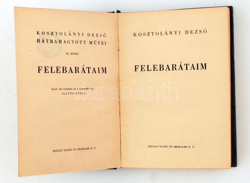 Kosztolányi Dezső: Felebarátaim (Kosztolányi Dezső hátrahagyott művei ... https://www.darabanth.com/de/267-Fernauktion/267.0/Andere-Sammelgebiete/Bucher-Sonstige-Raritaten~40/Kosztolanyi-Dezso-Felebarataim-Kosztolanyi-Dezso-hatrahagyott-muvei-IX-Sajto-ala-rendez~II1322873
