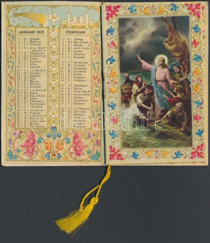 1931 Díszes, aranyozott Jézus naptár pp.:6, 10x6cm https://www.darabanth.com/de/267-Fernauktion/267.0/Andere-Sammelgebiete/Drucksachen~26/1931-Diszes-aranyozott-Jezus-naptar-pp6-10x6cm~II1340862