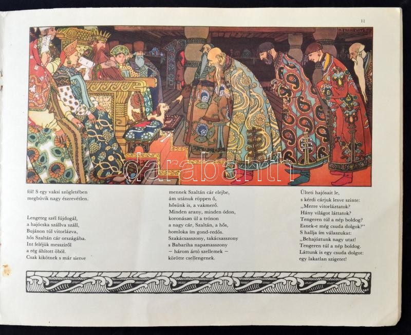 Alekszandr Puskin: Mese Szaltán cárról meg a fiáról, a dicső és hatalmas Gvidon hercegről... I. Bilibin rajzaival, Moszkva, 1904, Raduga Könyvkiadó. Színes rajzokkal illusztrált kiadvány.