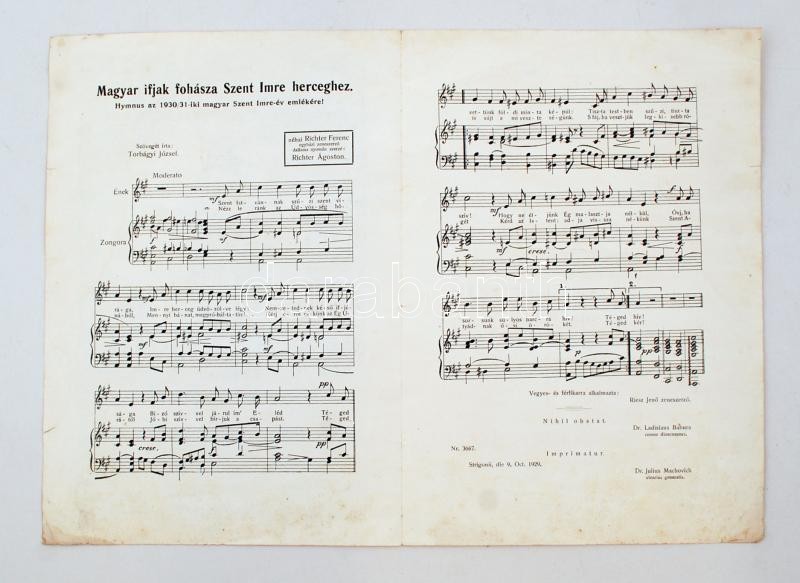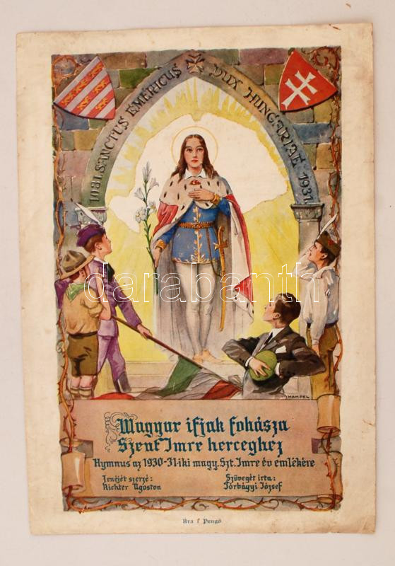 cca 1931 Magyar ifjak fohásza szent Imre herceghez. Hymnus az 1930-31-... https://www.darabanth.com/de/267-Fernauktion/267.0/Andere-Sammelgebiete/Drucksachen~26/cca-1931-Magyar-ifjak-fohasza-szent-Imre-herceghez-Hymnus-az-1930-31-iki-magyar-Szent-Imre-ev-eml~II1338012