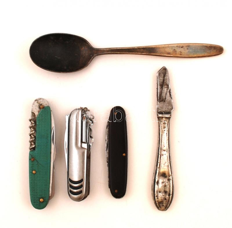 3 db bicska, 1 db kés megrövidült pengével, 1 db alpakka kanál https://www.darabanth.com/de/267-Fernauktion/267.0/Andere-Sammelgebiete/Flohmarkt~10/3-db-bicska-1-db-kes-megrovidult-pengevel-1-db-alpakka-kanal~II1338217