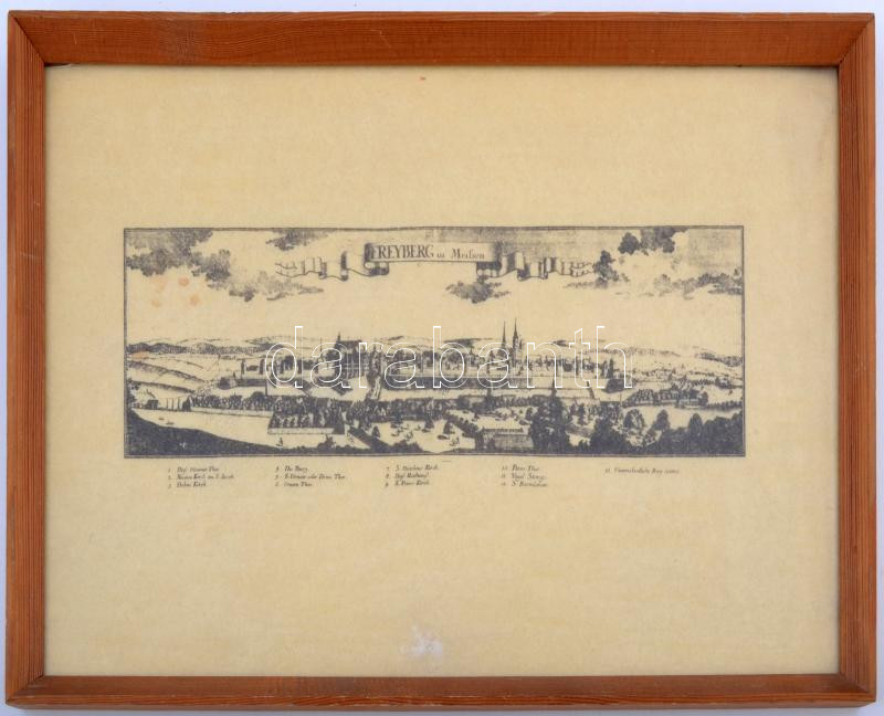 Beschreibung: Freyberg in Meissen. Rézmetszet alapján készült nyomat, üvegezett keretben, 10x28 cm, keret 26x39 cm