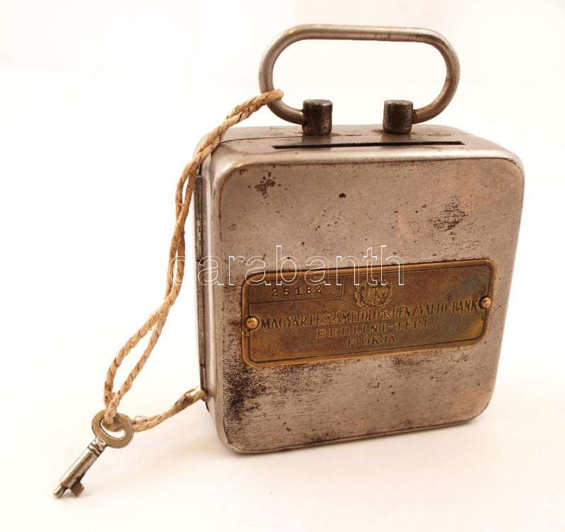 Magyar Leszámítoló és Pénzváltó Bank Berlin téri Fiókja fém persely, k... https://www.darabanth.com/de/267-Fernauktion/267.0/Andere-Sammelgebiete/Flohmarkt~10/Magyar-Leszamitolo-es-Penzvalto-Bank-Berlin-teri-Fiokja-fem-persely-kulccsal-9x9x4-cm~II1338228