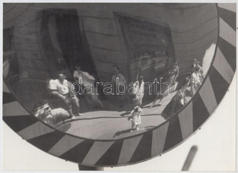 Beschreibung: 1963 Fazekas Margit: Fotósok görbe tükre, aláírt vintage fotóművészeti alkotás, 16,5x23 cm