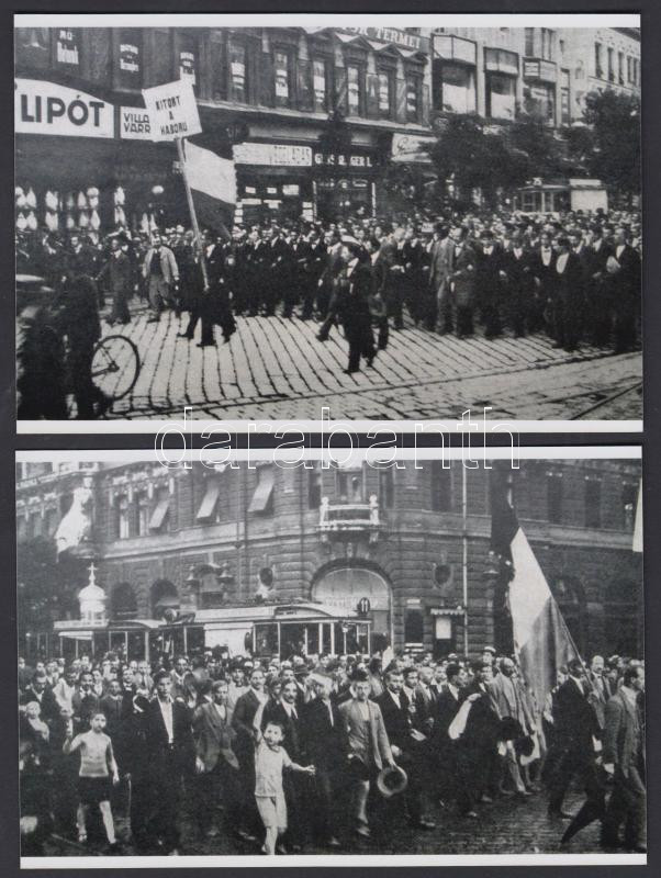 cca 1914 Budapest, A háború kitörését "ünneplő tömeg" miatt leállt 11-es és 75-ös (25-ös?) villamosok, Fekete György (1904-1990) fényképész hagyatékában fellelt 2 db repró negatív modern nagyítása, 10x15 cm