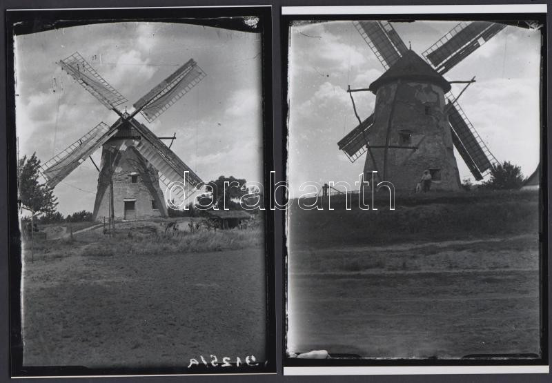 Beschreibung: cca 1930 Alföldi szélmalom elölről, hátulról, Kerny István (1879-1963) hagyatékában őrzött 2 db üveglemez negatív modern nagyítása, 18x13 cm