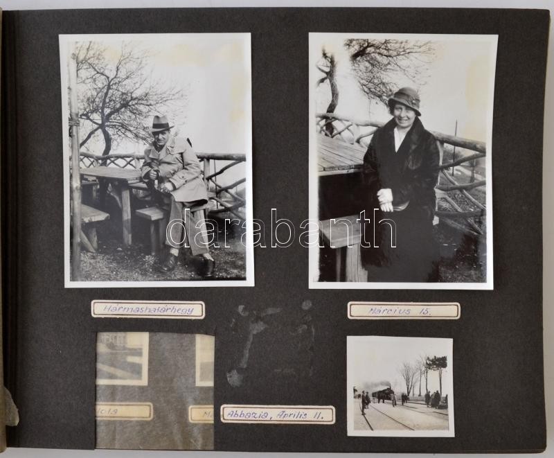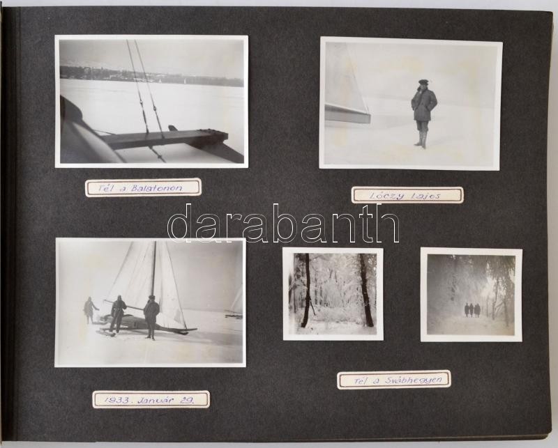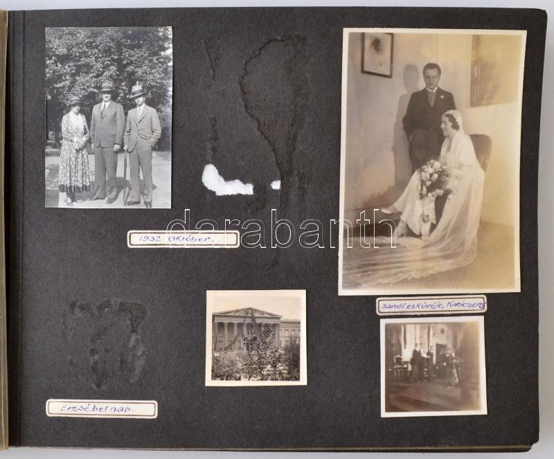 cca 1932-33 Vegyes fotóalbum ismert személyekkel, többek között: Lóczy Lajos, gróf Teleki, Baden Powell, Kammerer család tagjai, Kubinyi Gyula és még sokan mások, köztük Jamboree fotók is, cca 70db különböző méretű fényképek albumba ragasztva