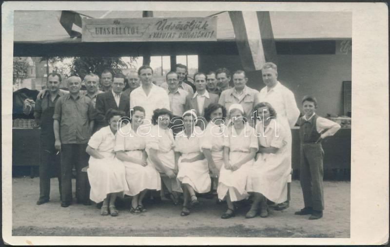 cca 1950-70 Utasellátó dolgozói, fotólap, 8x14cm https://www.darabanth.com/de/267-Fernauktion/267.0/Andere-Sammelgebiete/Foto~18/cca-1950-70-Utasellato-dolgozoi-fotolap-8x14cm~II1341902