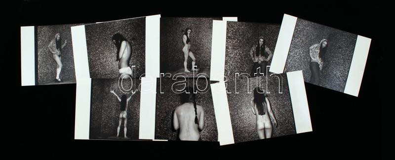 Beschreibung: cca 1975 Csíkos zokni volt a divat, 8 db finoman erotikus fénykép, modern nagyítások, 10x15 cm / 8 erotic photos, 10x15 cm