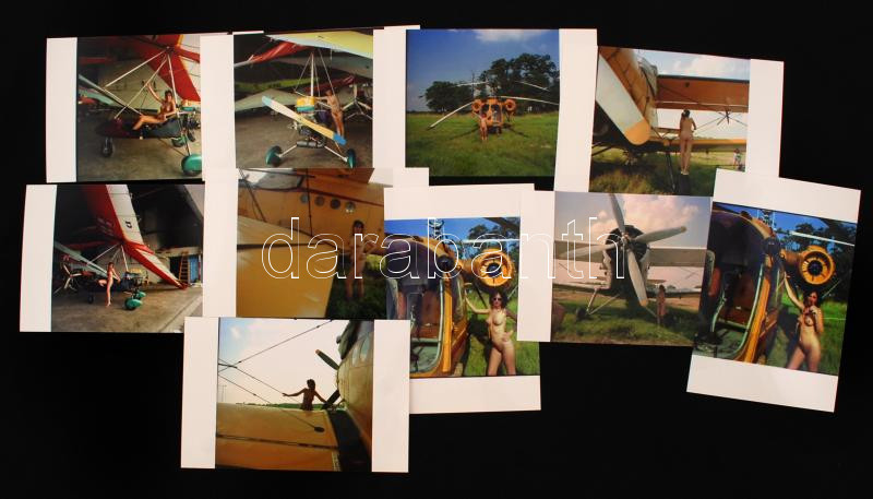 Beschreibung: cca 1984 Légi múzsa, földön járva, 10 db finoman erotikus fénykép, modern nagyítások, 10x15 cm / 10 erotic photos, 10x15 cm