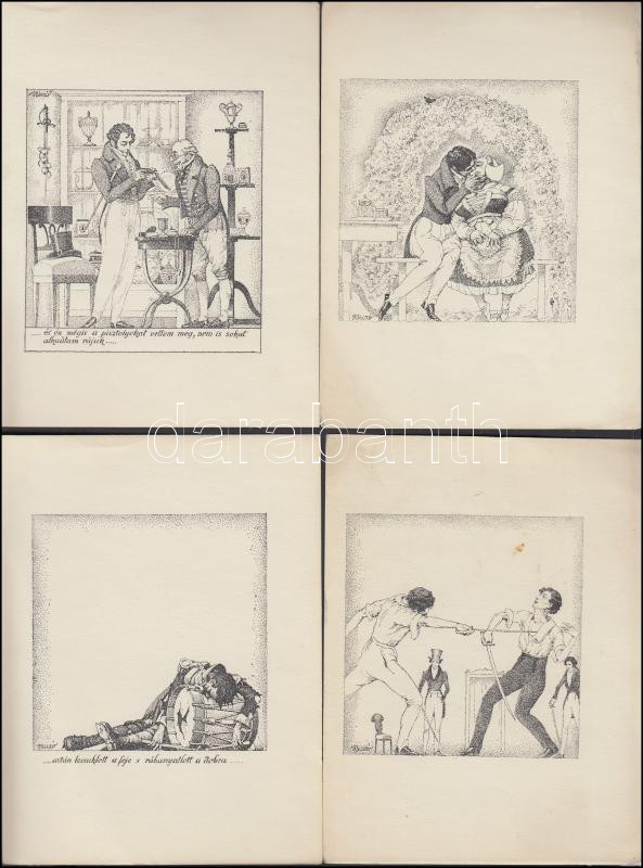 Beschreibung: Biczó András: Könyvillusztrációk(4 db). Klisé, papír, jelzett a klisén, 15x10 cm