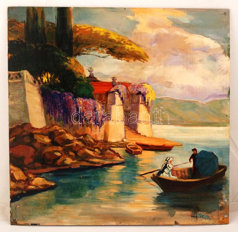 Beschreibung: Herrer jelzéssel: Mediterrán kúria. Olaj, falemez, 59×59 cm