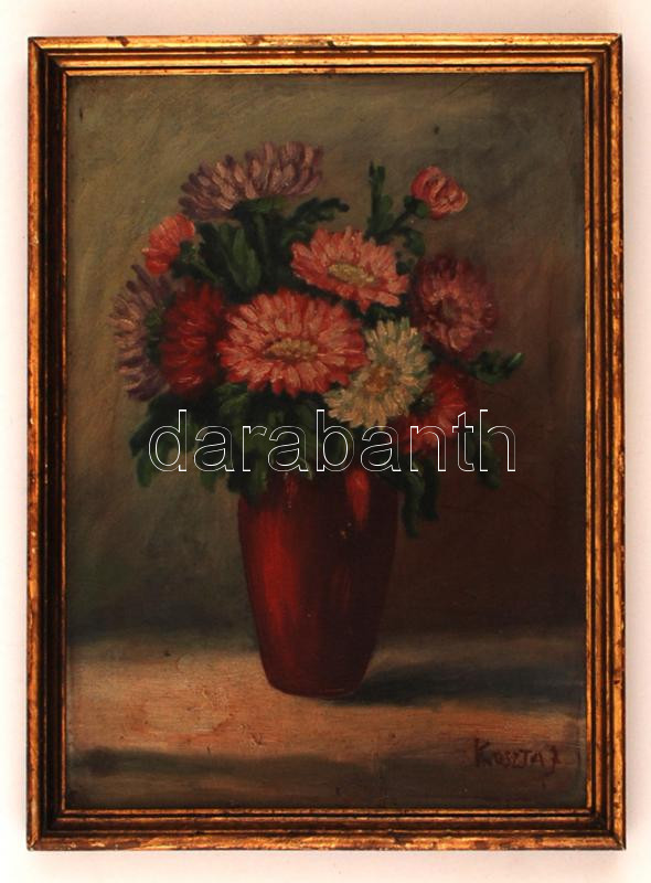 Beschreibung: Koszta jelzéssel: Virágcsendélet. Olaj, karton, keretben, 33×24 cm
