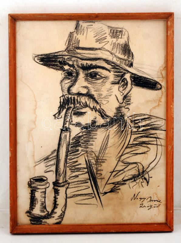 Nagy jelzéssel: Pipázó férfi. Szén, papír, foltos, üvegezett keretben,... https://www.darabanth.com/de/267-Fernauktion/267.0/Andere-Sammelgebiete/Gemalde-und-Grafiken~1/Nagy-jelzessel-Pipazo-ferfi-Szen-papir-foltos-uvegezett-keretben-48C39736-cm~II1342464