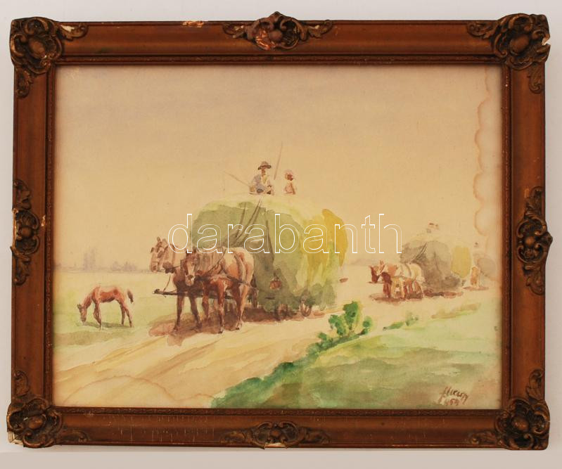 Olvashatatlan jelzéssel: Szénás szekér. Akvarell, papír, üvegezett ker... https://www.darabanth.com/de/267-Fernauktion/267.0/Andere-Sammelgebiete/Gemalde-und-Grafiken~1/Olvashatatlan-jelzessel-Szenas-szeker-Akvarell-papir-uvegezett-keretben-27C39735-cm~II1309287