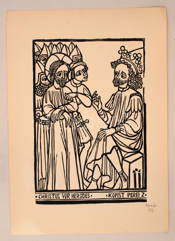 Perei Zoltán (1913-1992): Christus vor Herodes. Linó, papír, jelzett, ... https://www.darabanth.com/de/267-Fernauktion/267.0/Andere-Sammelgebiete/Gemalde-und-Grafiken~1/Perei-Zoltan-1913-1992-Christus-vor-Herodes-Lino-papir-jelzett--22C39715-cm~II1338992