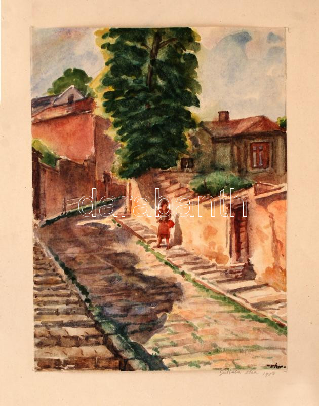 Sostarics Lajos (1896-1968): Gülbaba utca. Akvarell, papír, jelzett, ... https://www.darabanth.com/de/267-Fernauktion/267.0/Andere-Sammelgebiete/Gemalde-und-Grafiken~1/Sostarics-Lajos-1896-1968-Gulbaba-utca-Akvarell-papir-jelzett--23C39717-cm~II1338038