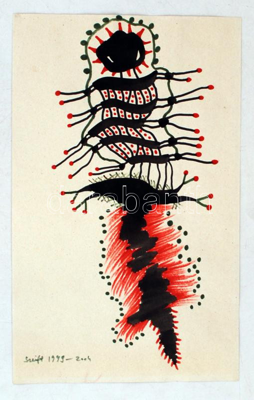 Beschreibung: Szeift Béla (1944-2012): A titokzatos. Filc-kréta, papír, jelzett, 40×25 cm