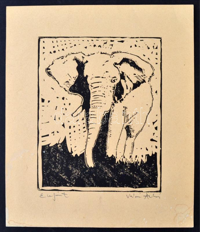 Váczi András(1967-): Elefánt. Linó, papír, jelzett, 19x15 cm https://www.darabanth.com/de/267-Fernauktion/267.0/Andere-Sammelgebiete/Gemalde-und-Grafiken~1/Vaczi-Andras1967-Elefant-Lino-papir-jelzett-19x15-cm~II1341274