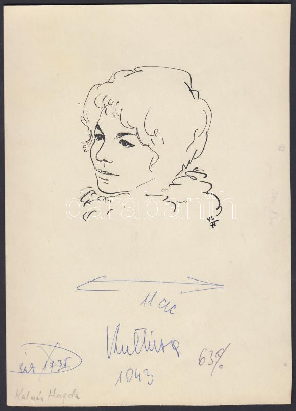Beschreibung: Vincze Lajos (1914-2002): Kalmár Magda (1944-).Tus, papír, jelzett, 13×9 cm